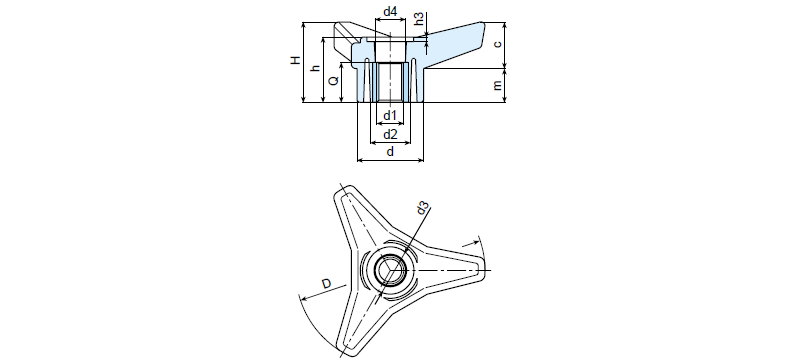 | Art. | D | H | h | d | c | m | d2 | d3 | d4 | h3 | Q | d1 | Weight (gr) | |