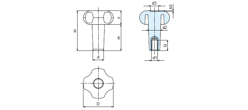 | Art. | D | H | m | d | c | d2 | d3 | h3 | d1 | Q | Weight (gr) |