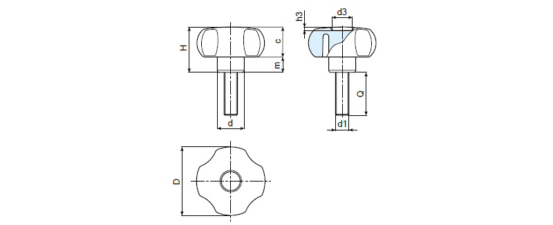 | Art. | D | H | d | c | m | d3 | h3 | d1 | Q | Weight (gr) |
