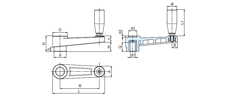 | Art. | L | R | H | D | d | m | c | A | B | h | d3 | h3 | dm | d1 H7 | Q | dl | L1 | Weight (gr) |