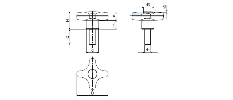| Art. | D | H | d | c | m | d3 | h3 | d1 | Q | Weight (gr) |