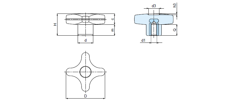 | Art. | D | H | d | c | m | d3 | h3 | Q | d1 | Weight (gr) |
