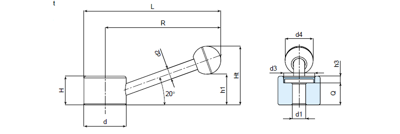 | Art. | d | R | L | H | Ht | h1 | h3 | d2 | d3 | d4 | d1 | Q | Weight (g) |