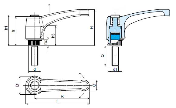 | Art. | L | R | H | D | d | c | h | h1 | h2 | h3 | d1 | Q | Weight (gr) |