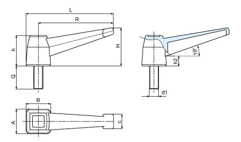 | Art. | L | R | H | A | B | c | h | h2 | d1 | Q | Weight (gr) |