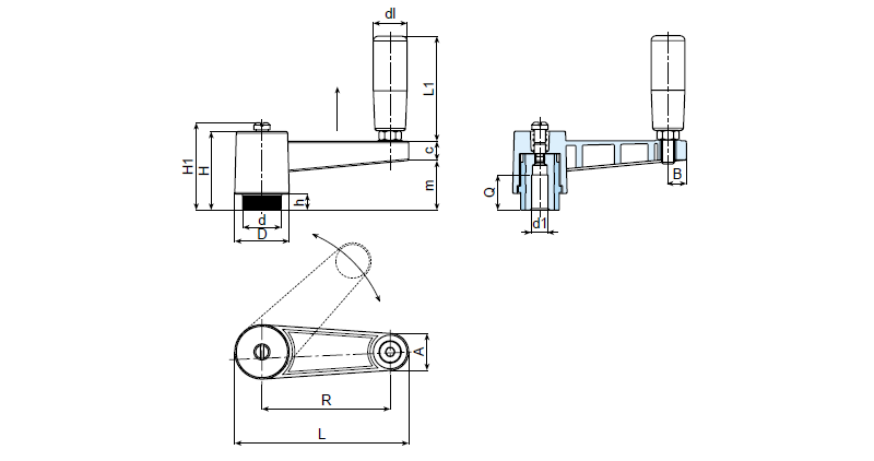 | Art. | L | R | H | D | d | m | c | A | B | h | H1 | d1 H7 | Q | dl | L1 | Weight (gr) |