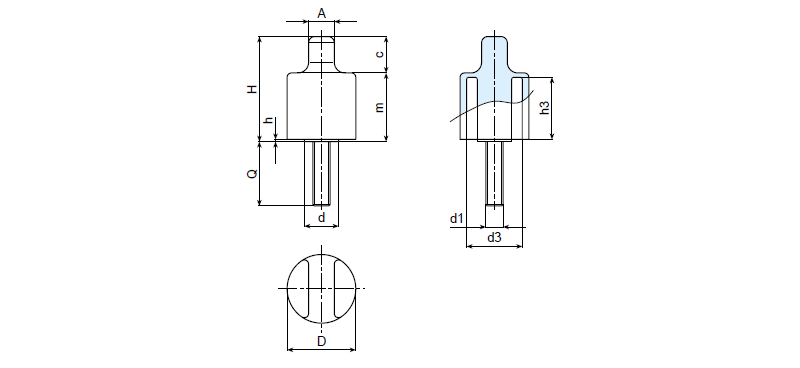 | Art. | D | H | d | A | c | m | h | h3 | d3 | d1 | Q | Weight (gr) |