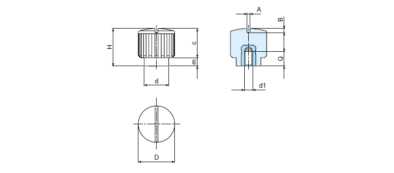 | Art. | D | H | d | m | c | A | B | Q | d1 | Weight (gr) |