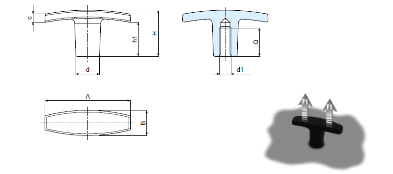 | Art. | A | B | H | h1 | c | d | d1 | Q | Weight (gr) | F1 (N) |