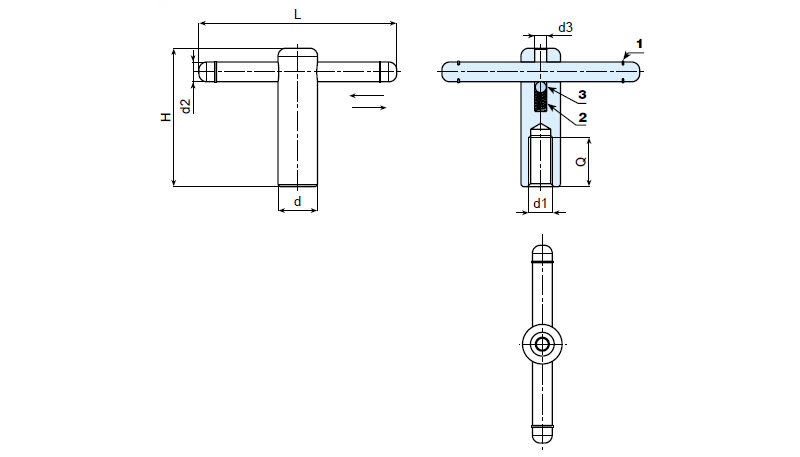 | Art. | d | L | H | d2 | d3 | d1 | Q | Weight (g) |