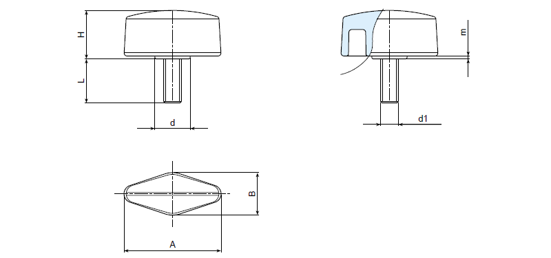 | Art. | A | B | H | m | d | d1 | Q | Weight (gr) |